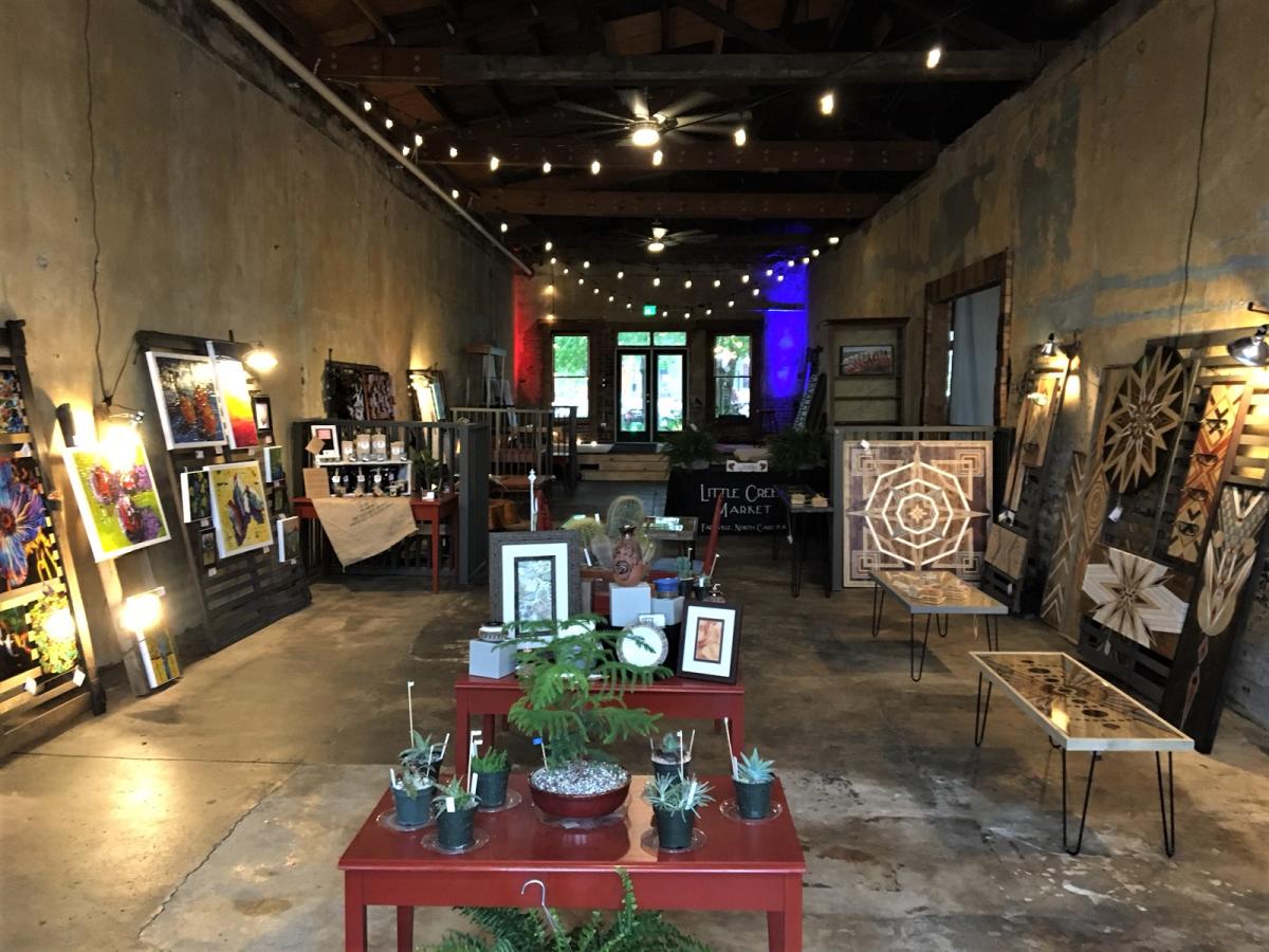 Dickinson Avenue Farmers and Makers Market is an indoor, year-round market located in a 100 year old former Cher-Cola bottling plant! The market features items made or grown within 50 miles of Greenville. Shop a rotating seasonal selection of farm-fresh produce, local honey and sauces, succulents, handmade cards, home-made chocolates, locally-roasted coffee, hand-carved wood tables and art, and much more!