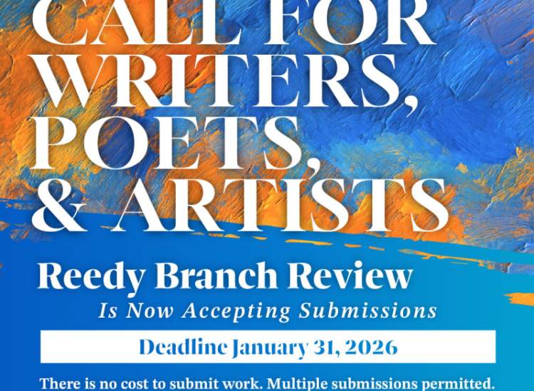 Reedy Branch Review's Volume 8 submission window is open until January 31. Submissions are free and...