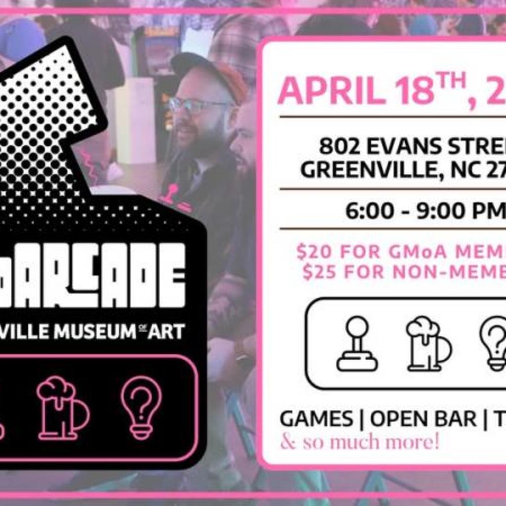 The Greenville Museum of Art’s GMoArcade returns this year! Join us for an evening of gaming, socializing, and more! This is a ticketed event for ages 18+. Tickets include open bar with beer, wine, seltzer, and non-alcoholic beverages, and attendees can expect a wide variety of games including board games, video games (including vintage games), arcade games, pub quiz, and more!Food Truck: Mexico en la Calle; food available to purchaseIf you are interested in the day-time family-friendly version of this event, visit the Super Family Game Day event page.If you are interested in volunteering, sponsoring, or getting involved with this event, contact us by email at communications@gmoa.org.Tickets:-$20 - GMoA Members-$25 - Non-Members