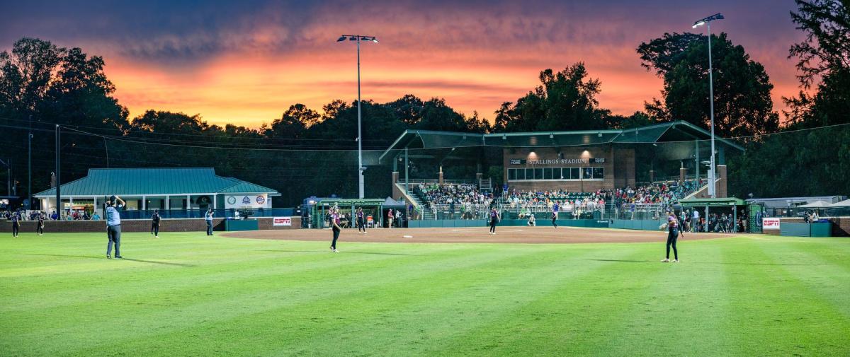 An expansive public park featuring pickleball and tennis courts, 2 playgrounds, greenway access, lawn games, and Stallings Stadium- home to the Little League Softball World Series. Learn more about Elm Street Park here!